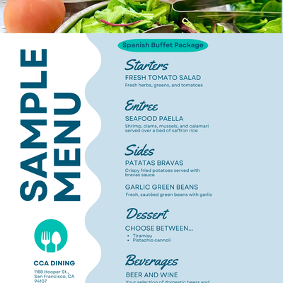 CCA offers comprehensive food and beverage catering options to groups through our exclusive, on-site caterer, Bon Appétit. To view Bon Appétit’s catering menu, use this link. All catering orders must be placed 7 days in advance of your event via the Bon Appétit Catertrax website.