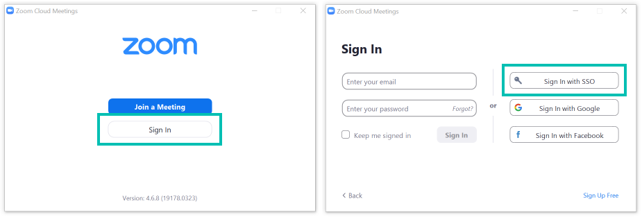 a. When opening the Zoom client for the first time, you'll need to log in with your CCA credentials. Click on Sign In and then click Sign In with SSO.